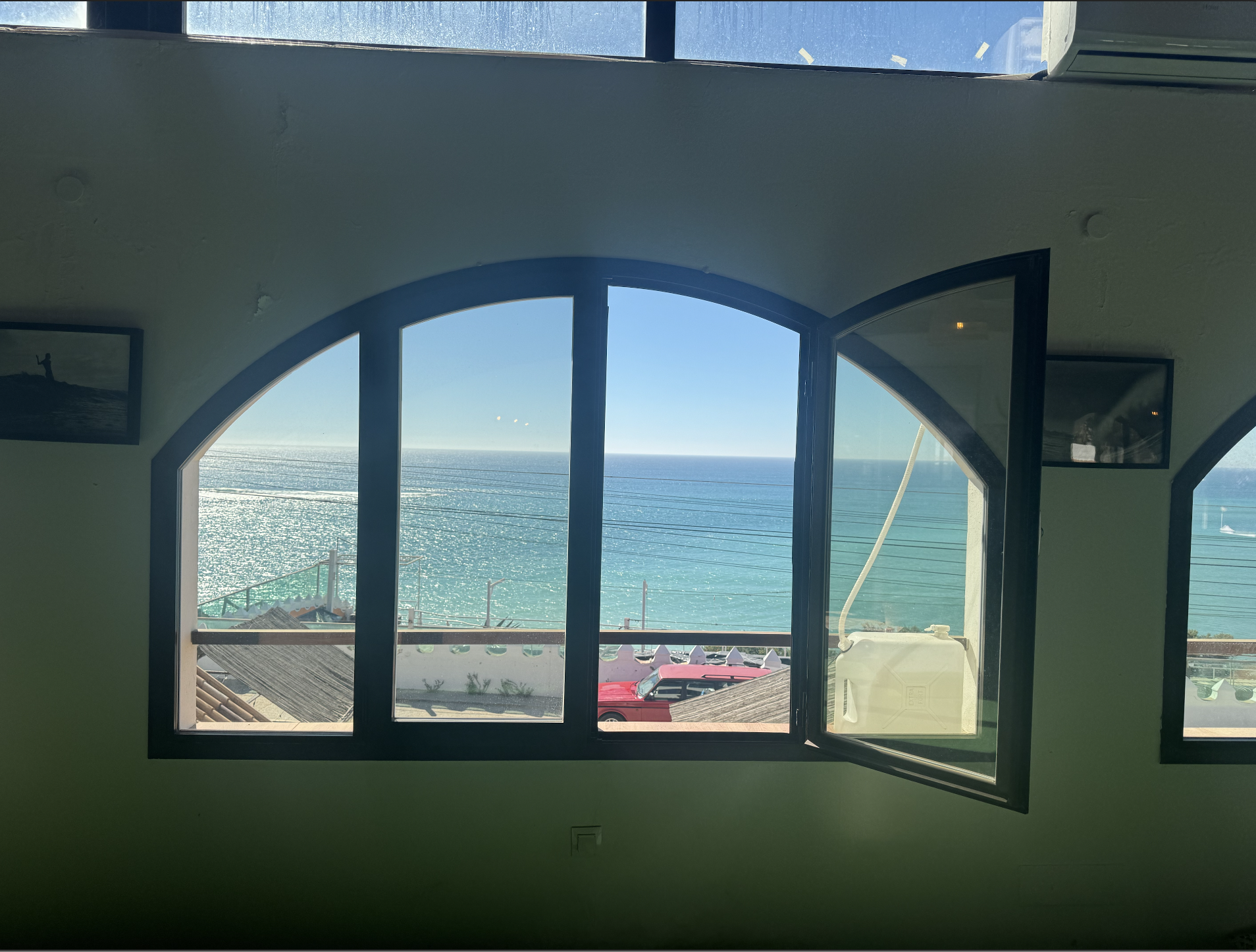 Jag går upp för trappan som leder till det öppna kontorslandskapet. Det är fortfarande tidigt och när jag kliver in genom dörren fascineras jag över utsikten man får här uppifrån. Det blåa havet öppnar upp och där nere ser man flera små prickar - jag förstår efter ett tag att det är surfare som även de vaknat innan solen hunnit stiga ovanför horisonten.